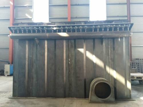 每個袋室(箱體)的上方均相應連接有一個清潔氣體箱,其內部裝有11排噴吹管,頂面有6個檢修用的人孔門。噴吹管進氣端用快裝式連接管件固定在壁板上,終端用壓板固定在支架上。這種結構型式方便噴氣管的安裝調整,可確保其噴吹口與濾袋同心以達到完美的噴吹效果。